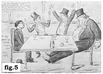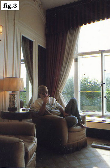 with unknown male persons in his room Someone sent me a copy of the fourth printing of The Trials of Oscar Wilde (1952) which contains the full record of all three trials. When I got to the part about the rooms at the Savoy, I wondered, were either of those the rooms that I had stayed in? It was possible. One of the things I had splurged on was “river view” which was a good deal more expensive than the “city view” rooms. I was vaguely bemused on arrival to find that the view was completely obscured by the trees that grow on that side of the Thames embankment (Fig.3) It seemed a distinctly typical “world class hotel” trick: the first time you stay here, you get the trees. If you come back, you’ll know enough to ask and we’ll put you up where you can actually see the river. As you can see by the photo, the trees were just high enough to make viewing the Thames a complete impossibility. It is interesting to me, in this age of sexual latitude, that Oscar Wilde’s conduct is not only excused but revered as that of one brave homosexual’s courageous stand against a society of philistines—and that it is so seldom taken into account that whatever one might think of his sexual inclinations and to whatever extent one subscribes to the “love conquers all” theorem (or Woody Allen’s “the heart knows what it wants” variation on the theme which led him to his lover’s high-school-aged stepdaughter), Wilde was, at the time, a husband and a father to two small boys and consequently an adulterer (and a shameless one if the testimony of Lou˙s is to be believed): Lou˙s returned to Paris, disgusted at what he had seen. He told Henri de Régnier that Wilde was now confessedly a pederast, and had abandoned his wife and children for Douglas. Régnier passed on the details to Edmond de Goncourt, who entered them gloatingly in his journal for 30 April. But Lou˙s had spoken not out of an urge to impart scandal, but out of a real dismay. He decided to urge Wilde to change his ways. An opportunity came in late May 1893, when Wilde stayed for a few days at the Hôtel des Deux-Mondes in the avenue de l’Opéra. Lou˙s visited him, probably on the 23rd and remonstrated with him about his relationship with Douglas and his mistreatment of his wife and children. Wilde declined to offer any excuse or modify his conduct. Lou˙s, he said, had no right to sit in judgment over him. In that case, Lou˙s responded, he had no alternative but to break off relations. Wilde now gazed at him sadly and said, ‘Goodbye, Pierre Lou˙s. I had hoped for a friend; from now on I will have only lovers.’ But, of course, Neil interviewing me was well before the publication of Richard Ellman’s Wilde biography in 1987—the reading of which had first inspired the idea of casting Oscar Wilde as the third party in one of the two love triangles involving Jaka and her husband Rick in Jaka’s Story. At the time of the interview, I was just past the halfway point of the serialization of Church & State (if a 500-page graphic novel doesn’t impress them, maybe a 1200-page graphic novel will attract their attention being the sum of my internal thinking: as it turned out not only did a 1200-page graphic novel not interest the media and the general public but a 6,000-page one has slipped past them, well below their radar screens as well) and virtually all that I knew about Oscar Wilde was that he, er, looked like Roz Kaveney.