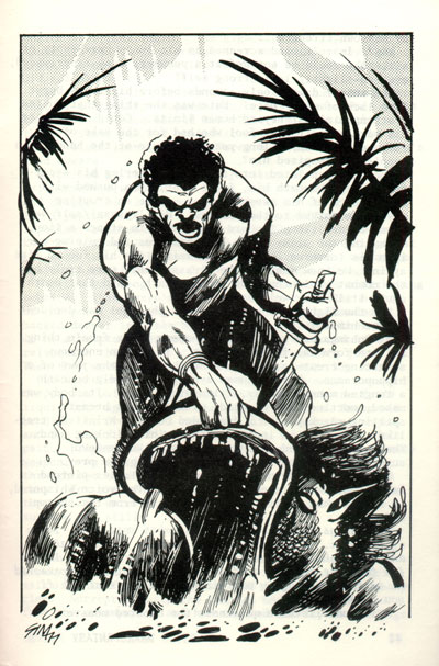 From: Dark Fantasy #14. Illustration for "Horror in the Black Hills" by Charles R. Saunders.