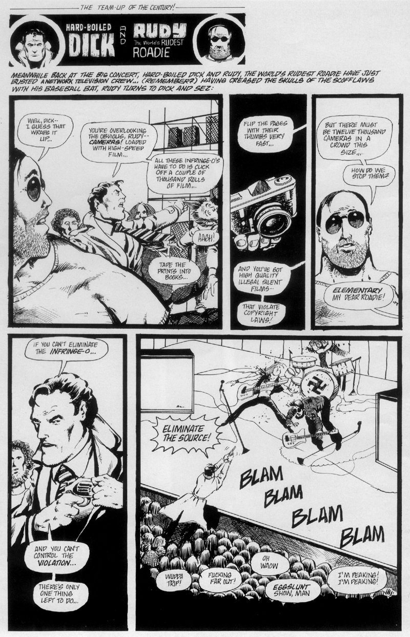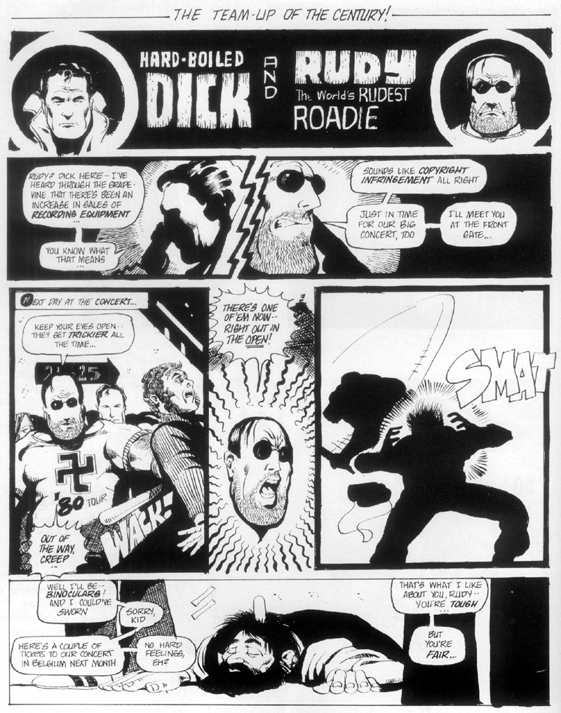 Issue five. More 'Hard-Boiled' Dick - this time teaming up with Rudy, the World's Rudest Roadie! Here's page one, and page two. There's also this ad for the Hot Wacks T-Shirt.