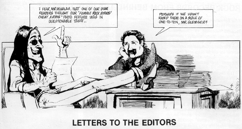 Issue six gives us the addition of the letters to editor header, and an ad featuring a girl wearing the Hot Wacks T-shirt.