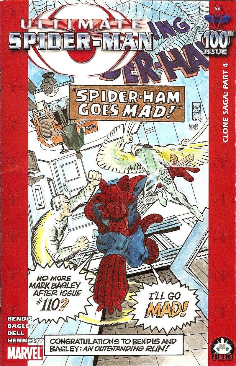 Dave Sim's contribution to the "Ultimate Spider-Man #100 Project." A tribute to Bendis & Bagley's amazing run. The cover features the 'Cerebus-esque' Spider-Ham (in place of Spider-Man) in an homage to a classic Steve Ditko cover.